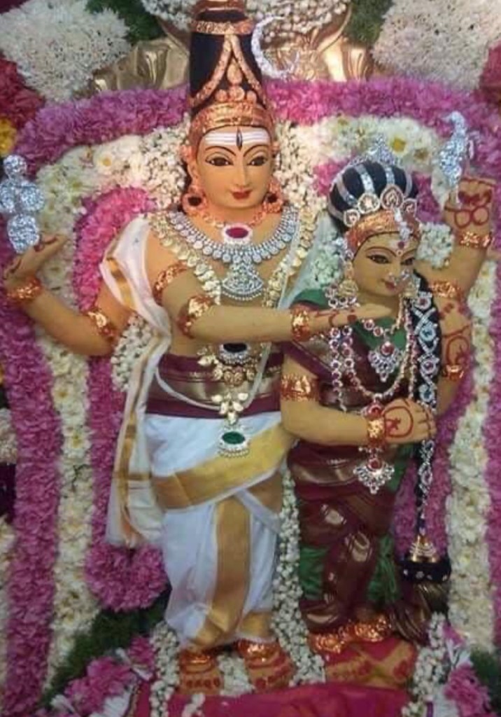 Lord Siva directed Meenakshi to return to Madurai and promised her that he would join her in eight days as her groom. Accordingly Meenakshi returned to Madurai, and at the appointed time, the divine wedding was celebrated with pomp and splendour. Maha Vishnu, believed to be the brother of Meenakshi is said to have given the bride away.